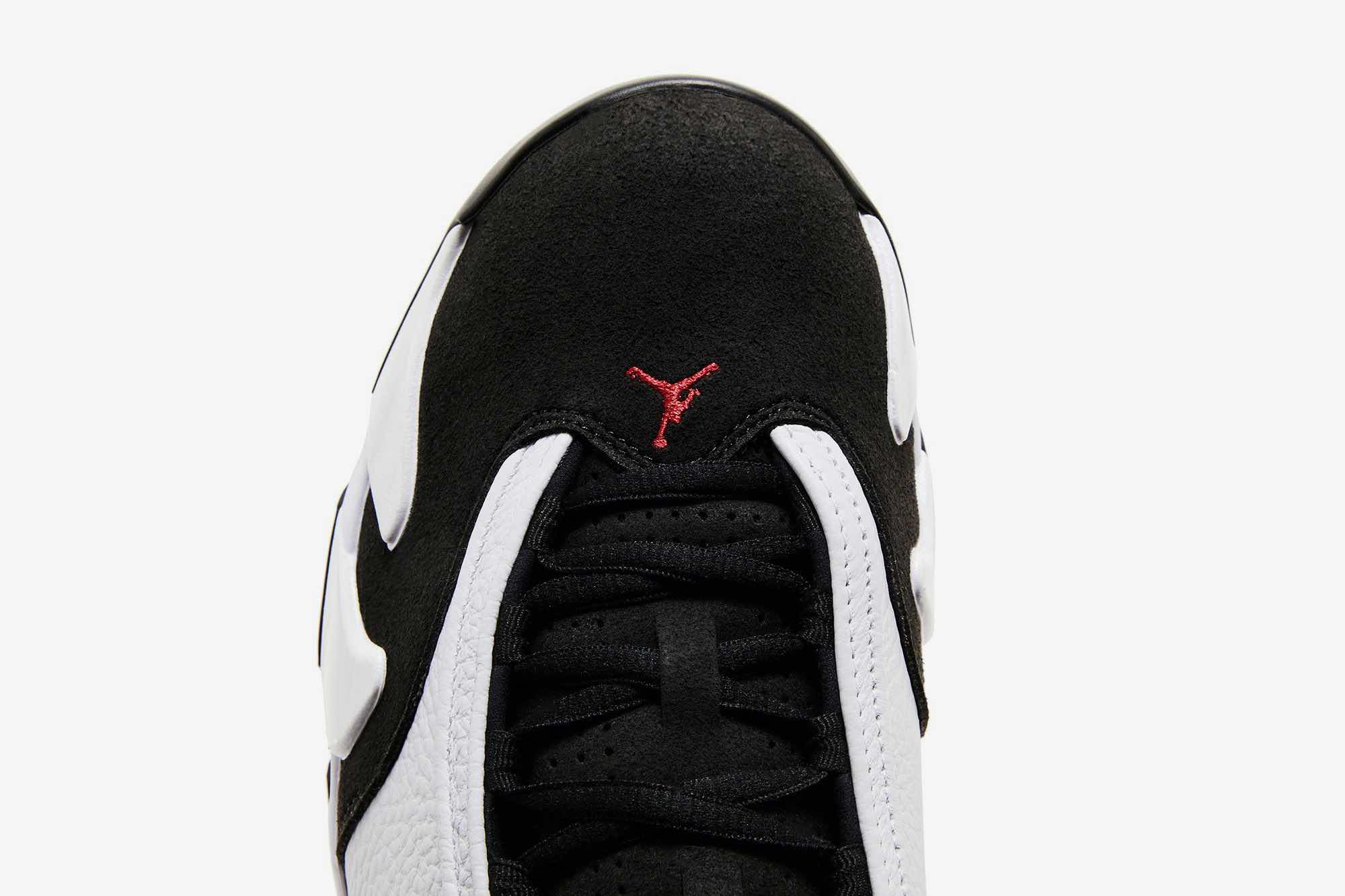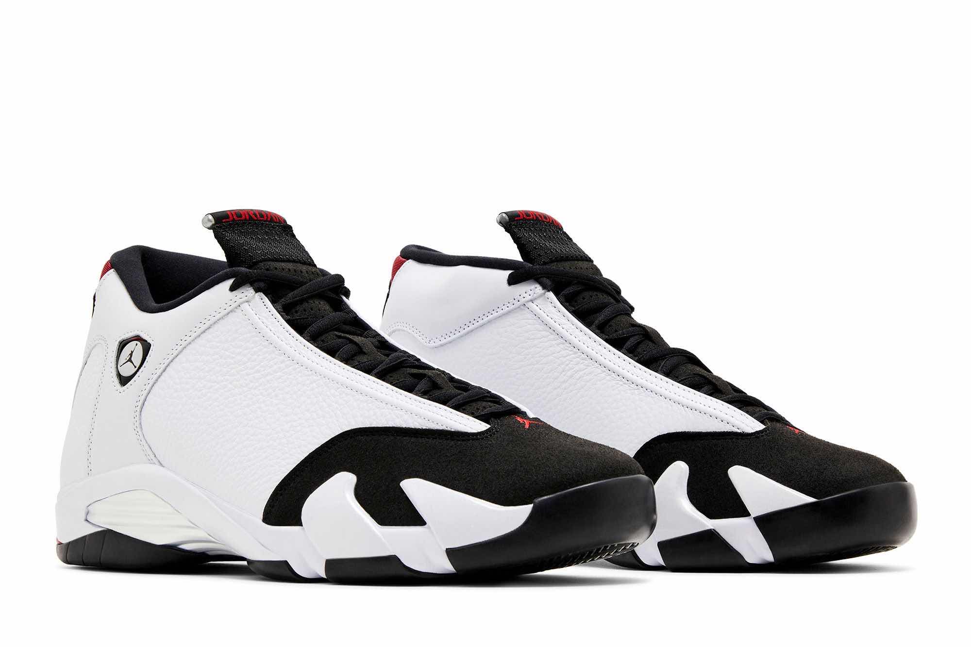 The Air Jordan 14 “Black Toe” returns in November 2024, featuring a classic white leather upper with black suede accents for a bold, iconic look. This re-release pays homage to the original 1998 design, incorporating the signature Ferrari-inspired Jumpman branding and metallic aglets. The Air Jordan 14 offers both style and performance with a Phylon midsole, chrome-plated shank plate, and Zoom Air units for stability and responsive cushioning.