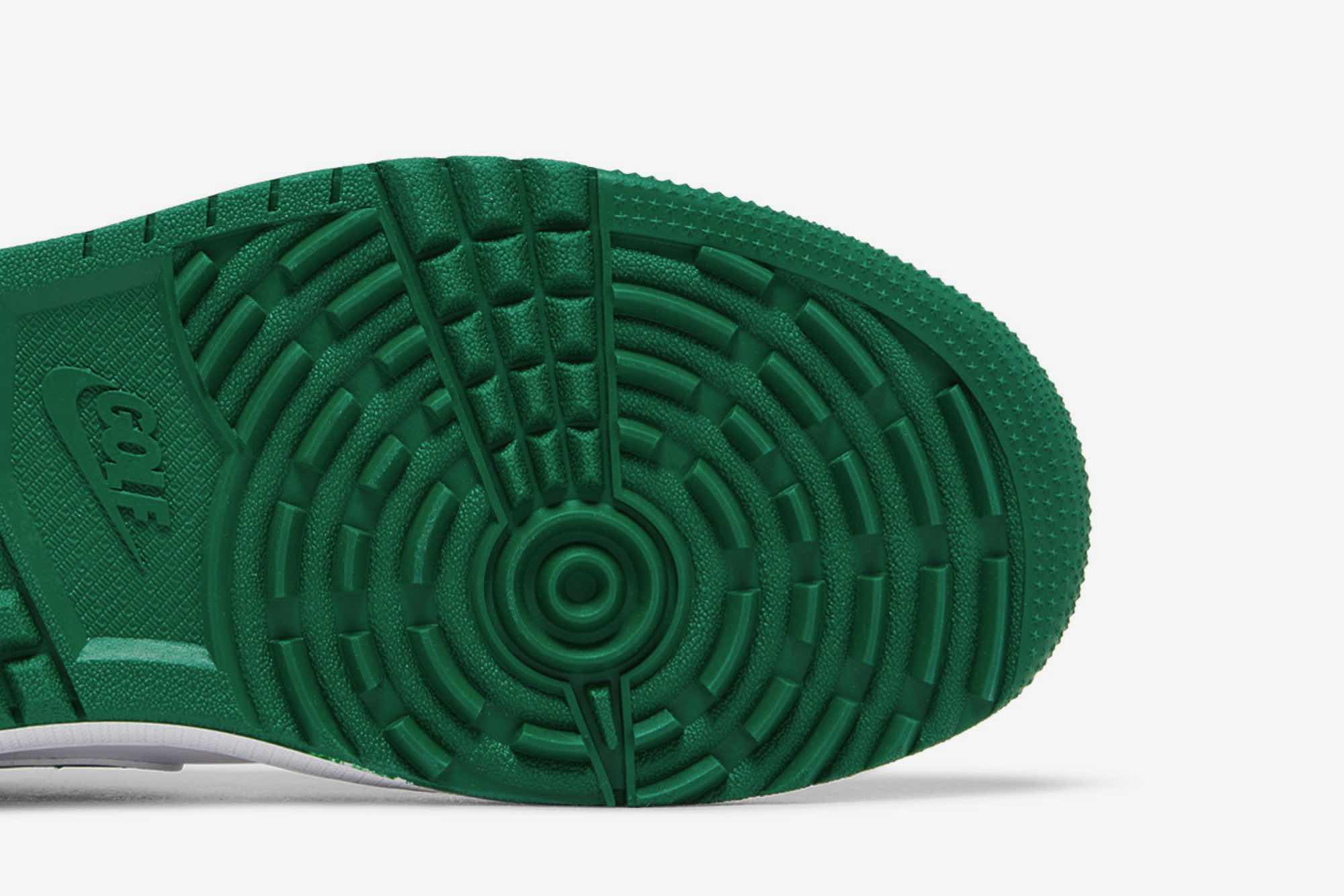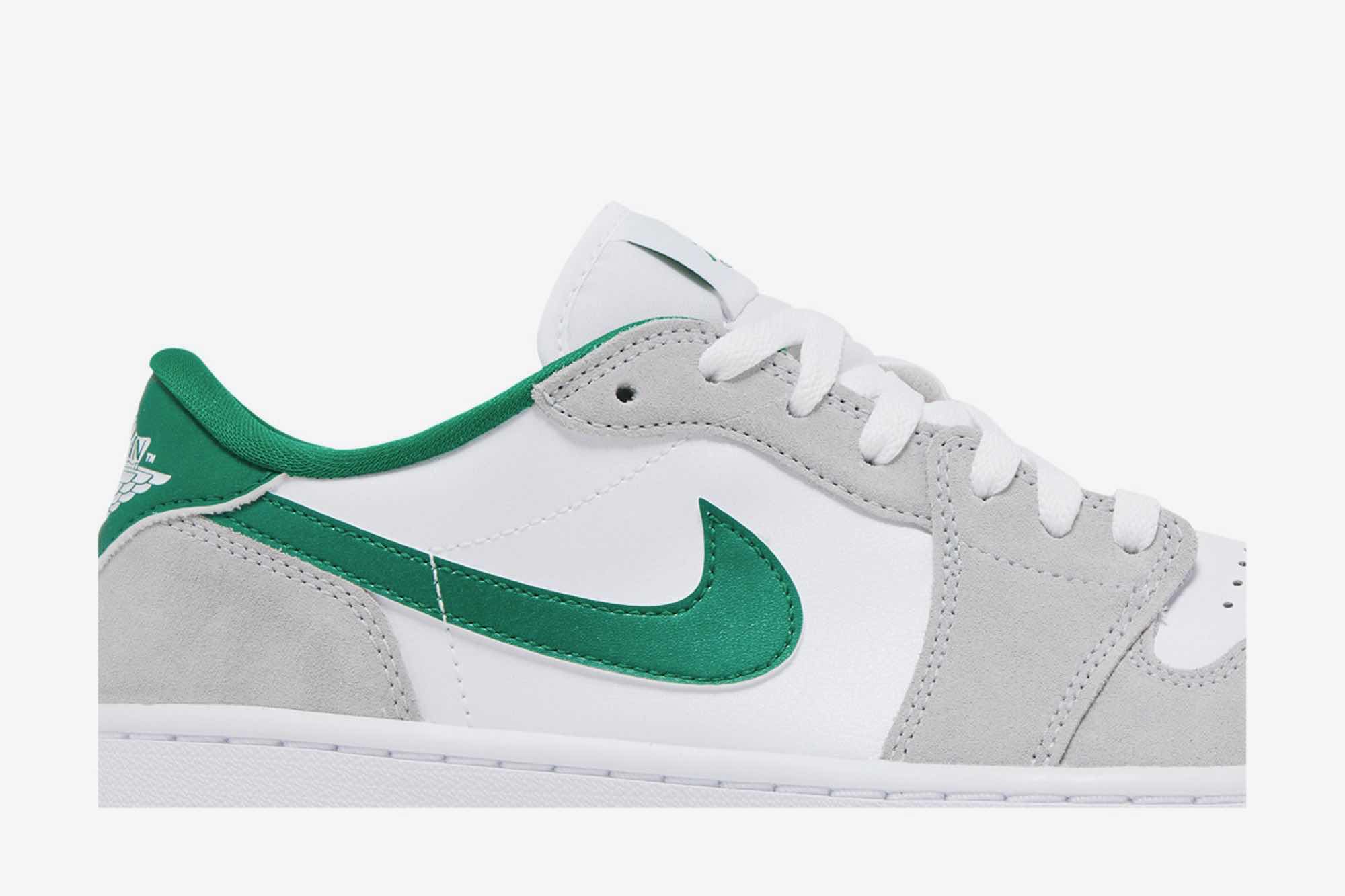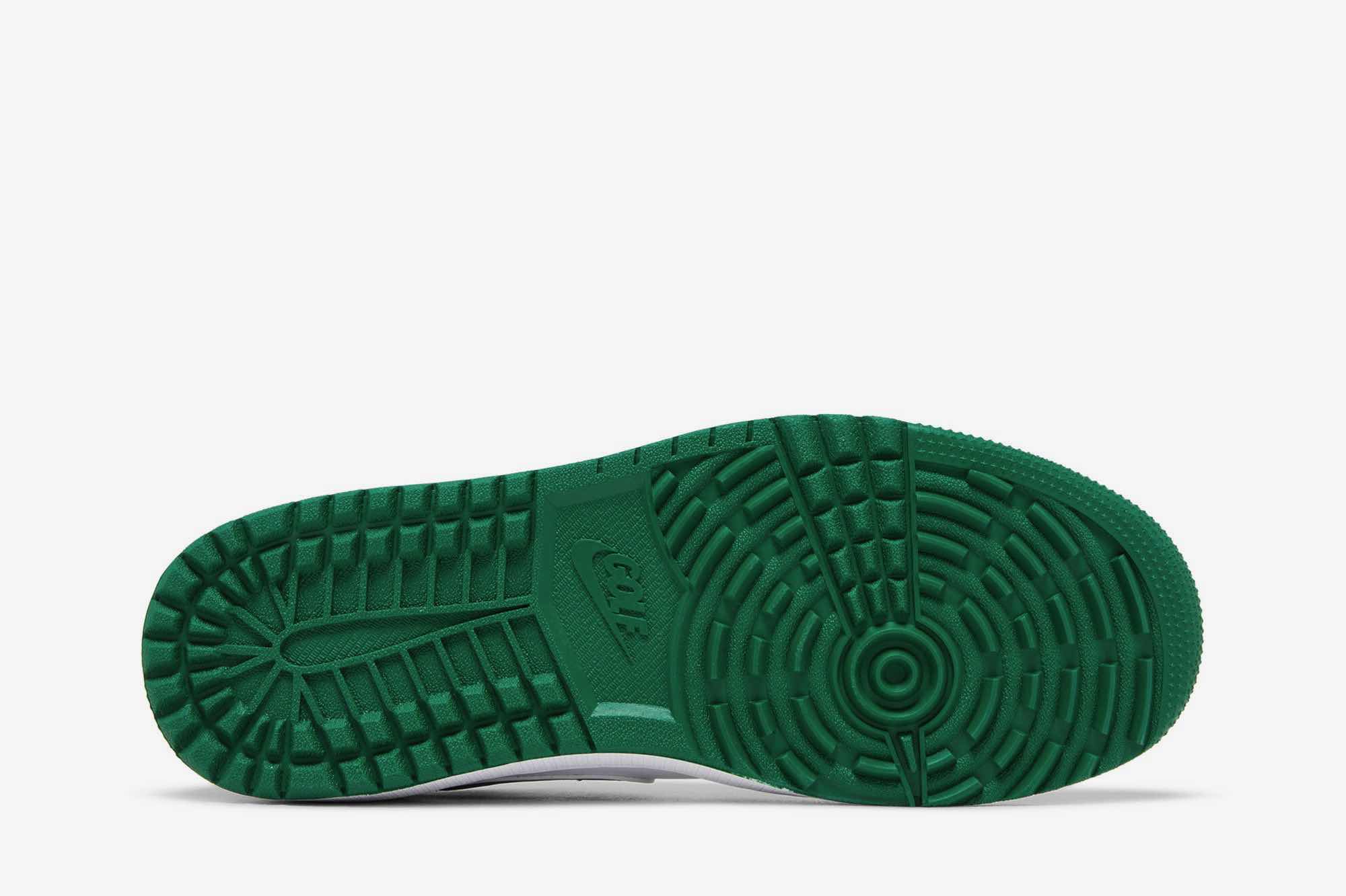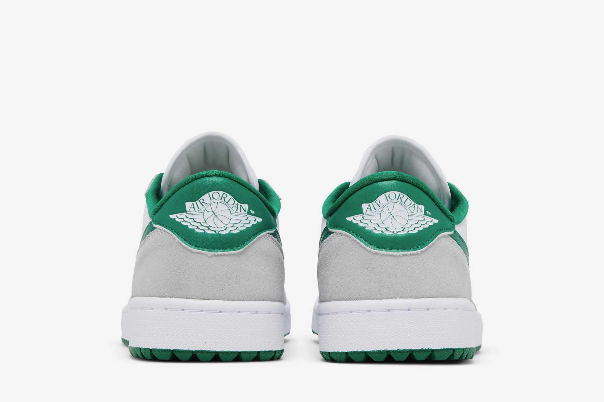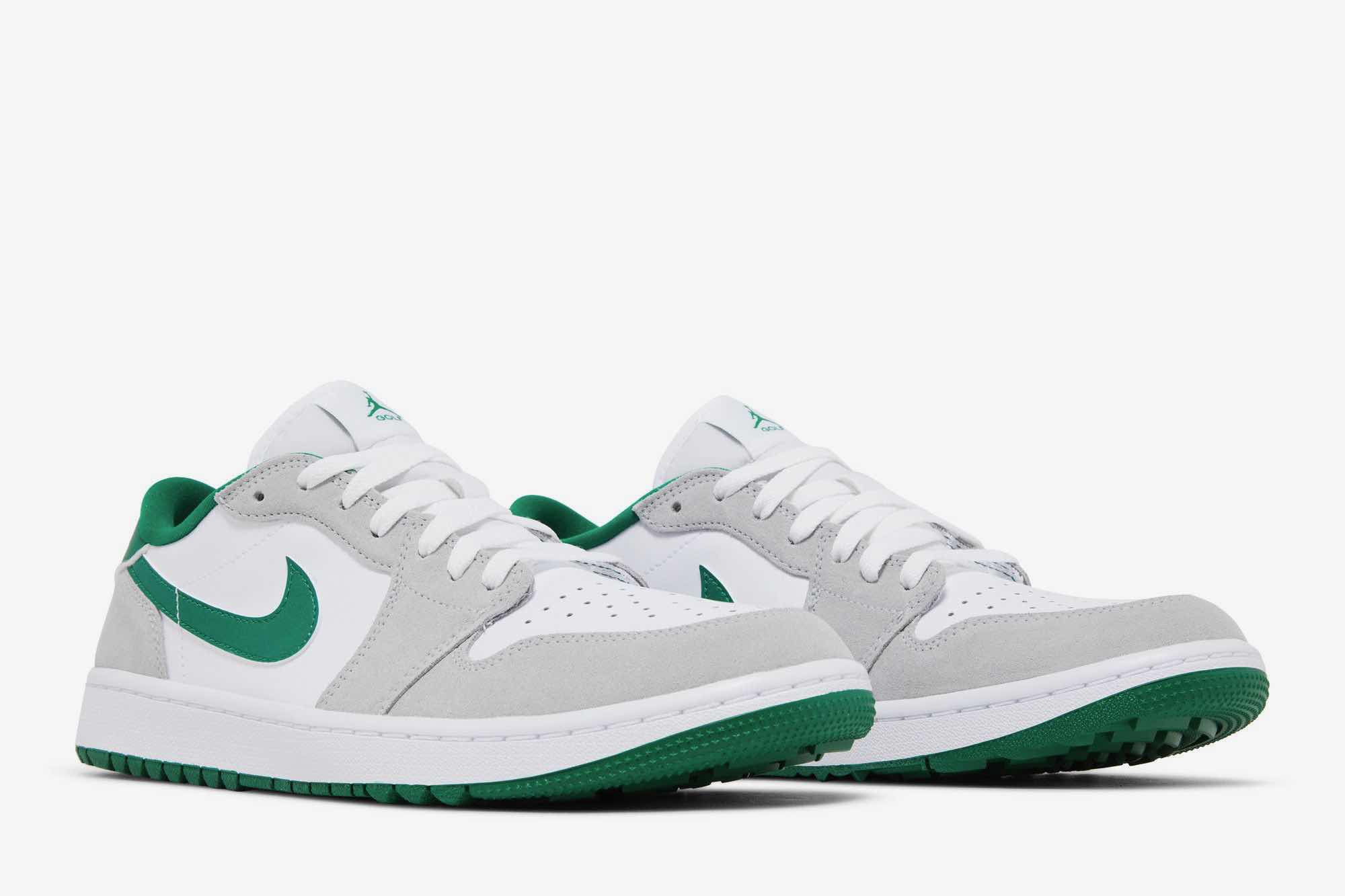The Air Jordan 1 Low Golf ‘Pine Green’ tees off with a refreshing blend of White, Pine Green, and Light Smoke Grey. Designed for the golf course, this sneaker boasts a full leather build with mesh tongues and lining. The base, in pristine white, provides the perfect canvas for the contrasting hits: “Pine Green” leather Swooshes, liner, and outsole, along with “Light Smoke Grey” suede overlays. The tongue branding, insoles, and heels also sport the titular green hue.
